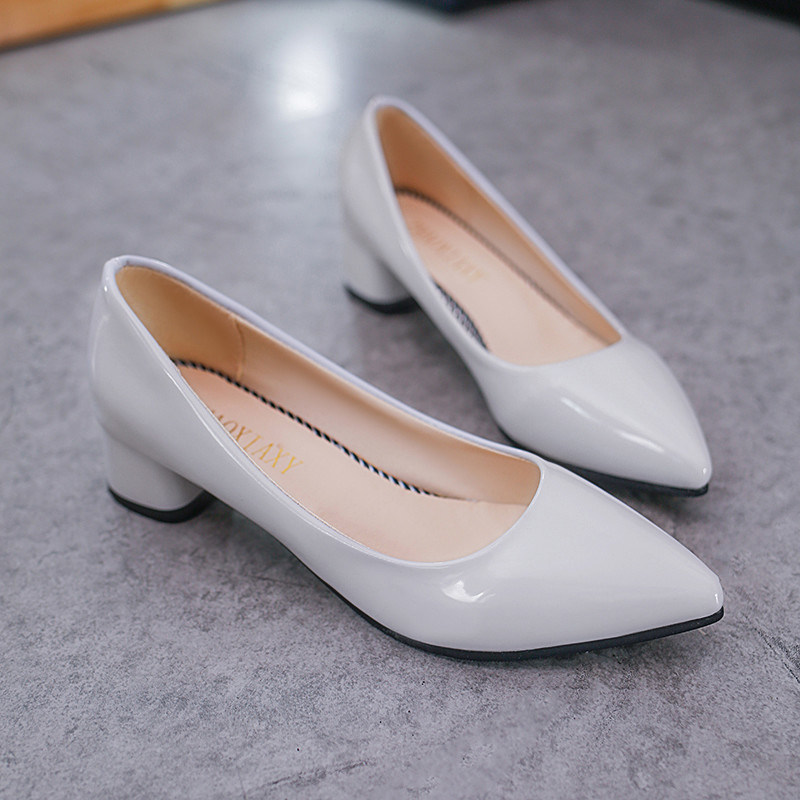Musim Semi Sepatu Tunggal Runcing Wanita Sepatu Hak Tinggi4cm Kulit Atas Pompa Kantor Bisnis Tumit Rendah Wanita